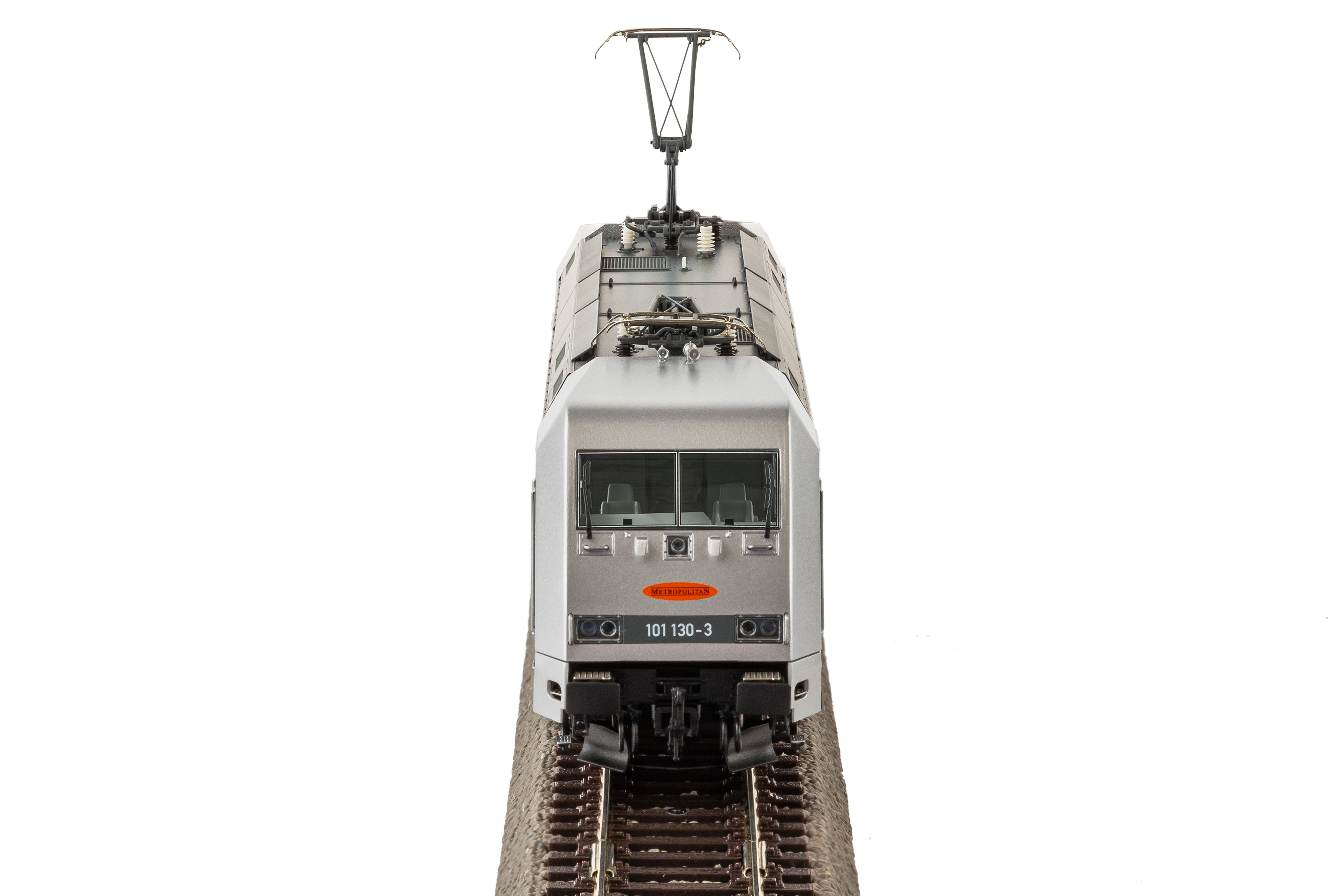 - Schnellzug-Elektrolokomotive BR 101 in silberner Lackierung, mit fahrtrichtungsabhängig wechselndem Dreilicht-Spitzensignal und zwei roten Schlusslichtern, digital schaltbarem Scheinwerfer und Führerstandsbeleuchtung. Als elektrische Verbindung zum Schnellzugwagen 1 verfügt die Lokomotive an einer Seite über eine 2-polige Kupplung und ist an der anderen Seite vollständig zugerüstet.