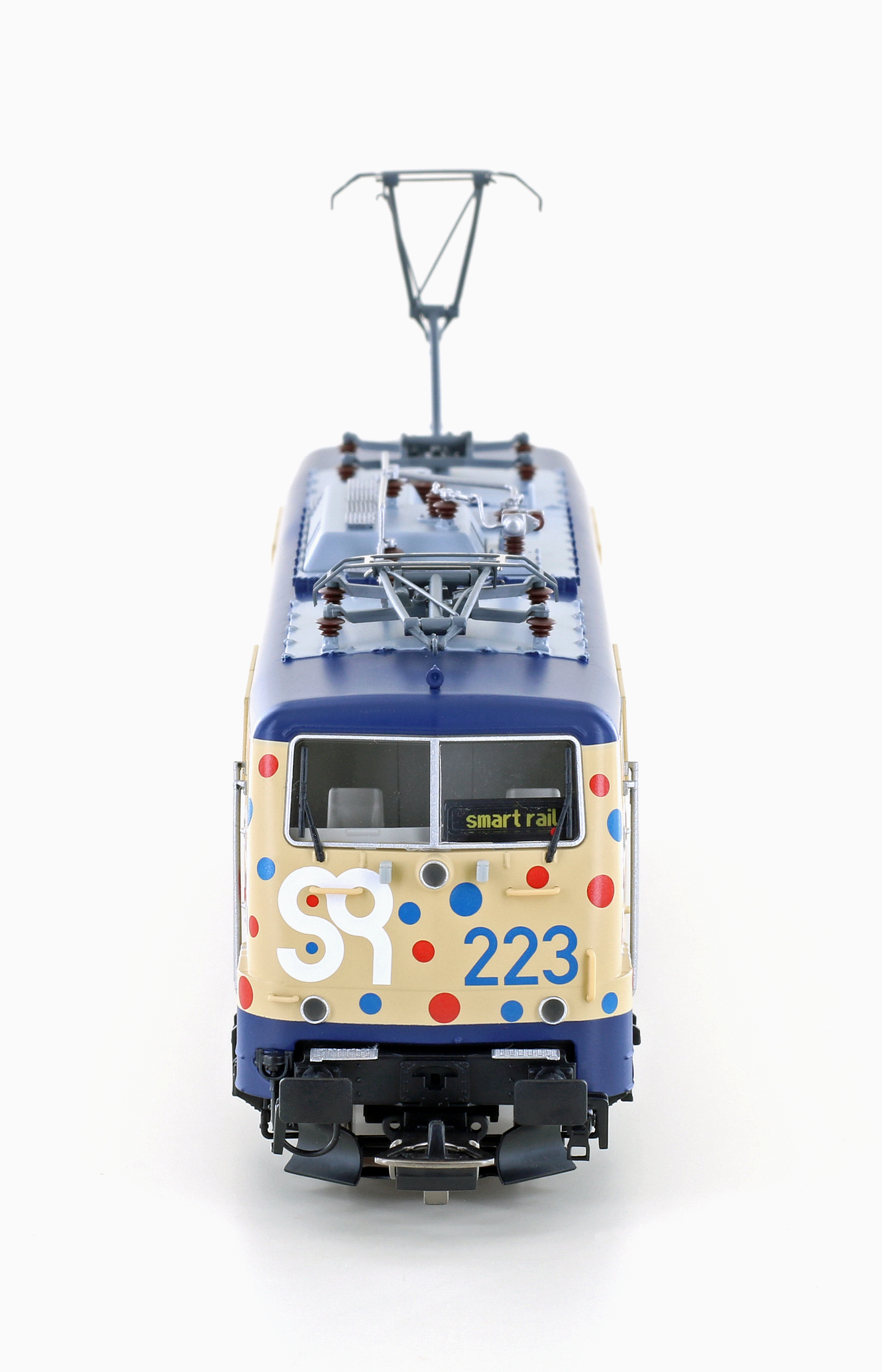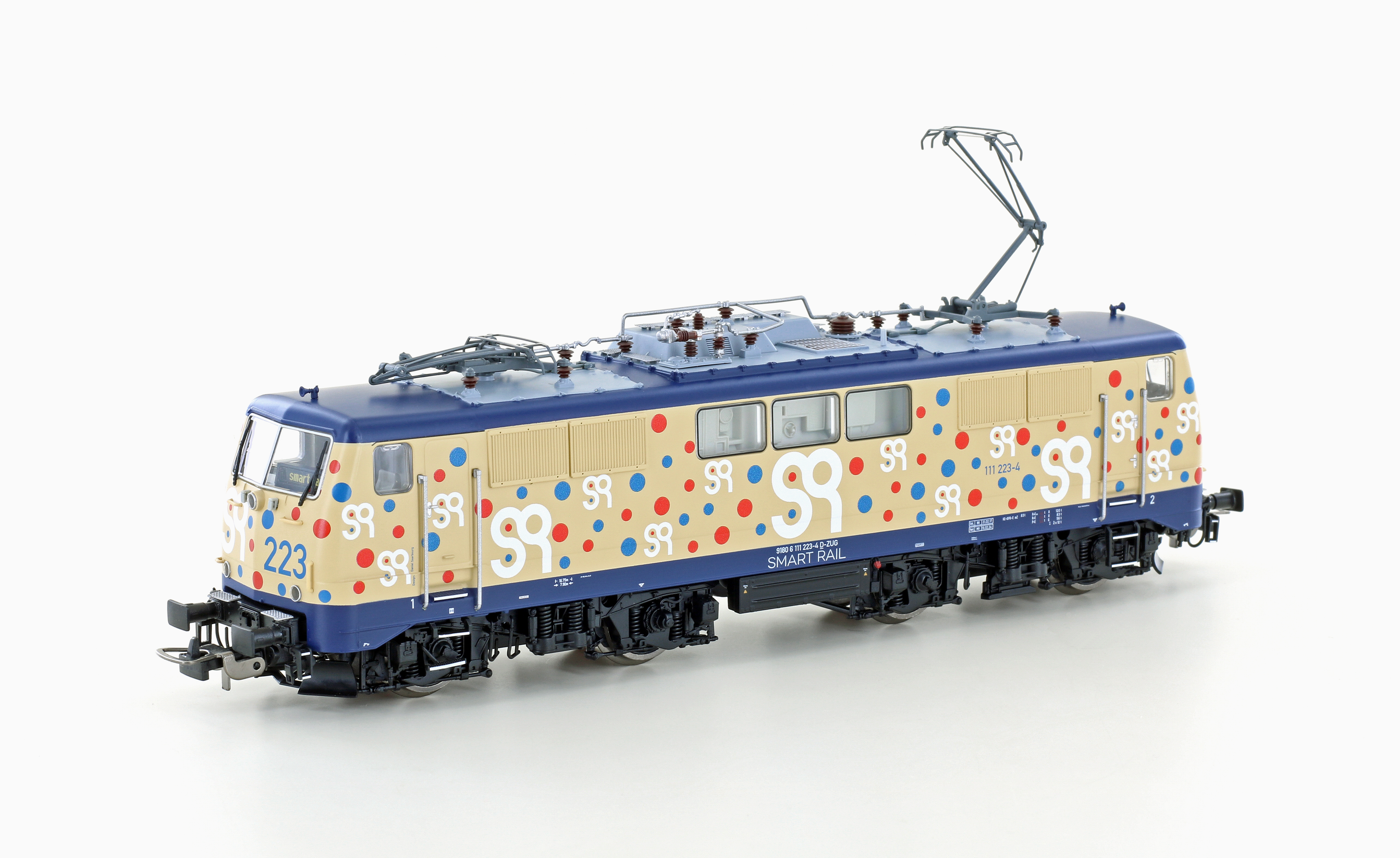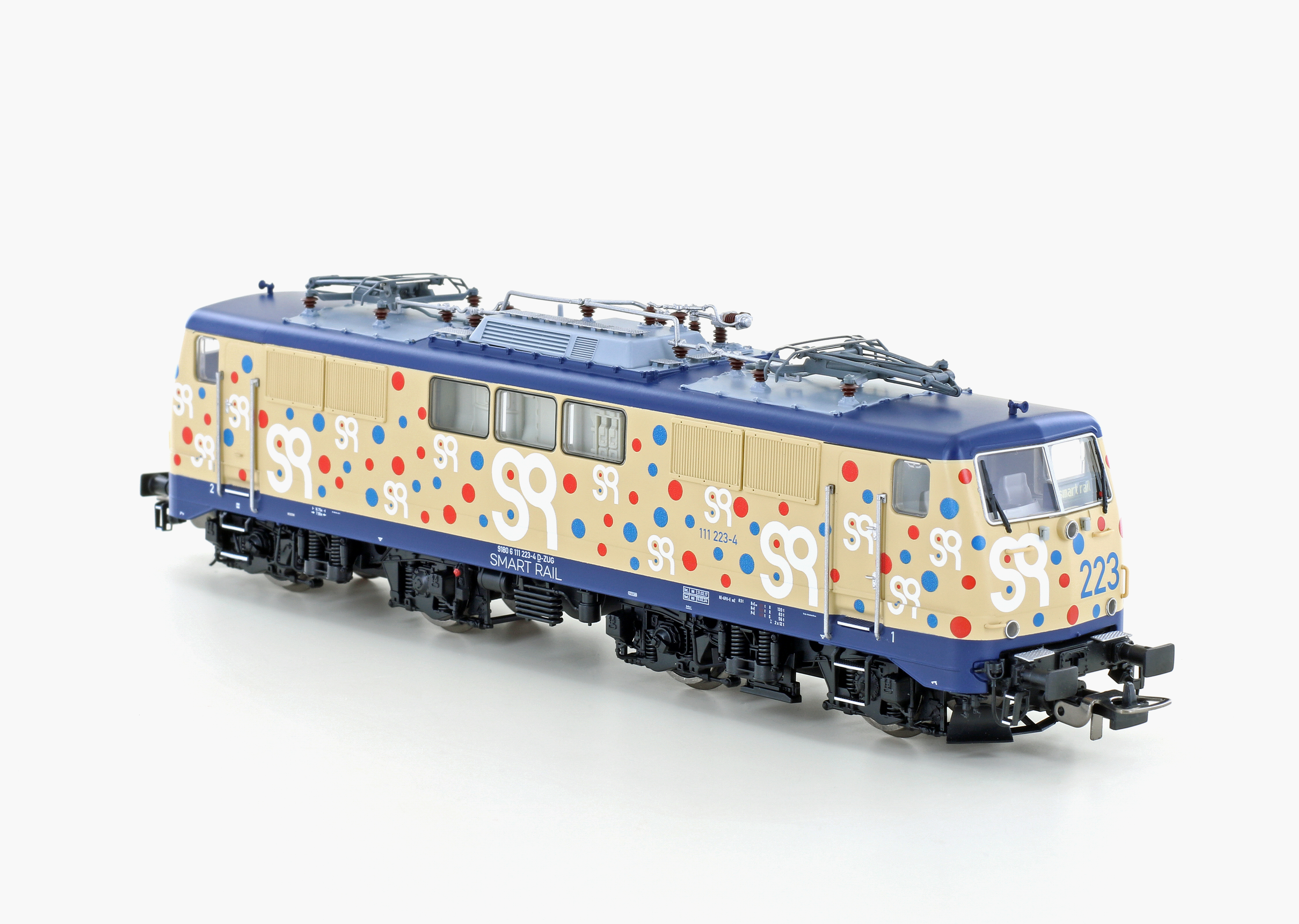 Die Flotte von Smart Rail GmbH besteht mittlerweile aus mehreren Lokomotiven der Baureihe 111 aus ehemaligen DB-Beständen. Das Vorbild unseres Sondermodels die 111 223 aus der 6. Bauserie wurde 1984 bei Henschel in Kassel gebaut und in der damals aktuellen Lackierung ozeanblau/beige an die DB ausgeliefert. Seit Frühjahr 2022 ist die Lok im auffälligen "Punkte"Design in Deutschland und Österreich unterwegs.